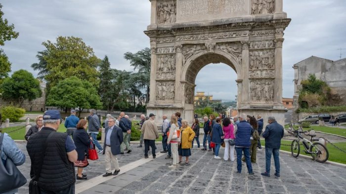 Nel corso dell’iniziativa gli anziani faranno da guida ai visitatori, illustrando le bellezze archeologiche e paesaggistiche del proprio territorio. Il progetto si snoda in sei tappe che toccheranno i luoghi più belli e iconici della Campania. Il primo tour si è già svolto lo scorso 25 maggio e ha dato ai partecipanti la possibilità di ammirare le bellezze di Benevento, città di origine sannitica, conosciuta nel IV secolo con il nome di Maleventum e poi nota come colonia romana col nome di Beneventum. Partendo dalla chiesa longobarda di Santa Sofia, i partecipanti hanno raggiunto l’arco di Traiano, simbolo della città.