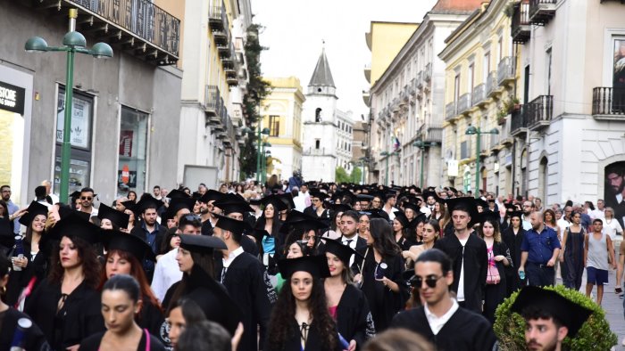 La cerimonia prenderà il via alle ore 19 da Palazzo De Simone in Piazza Arechi II, dove saranno consegnate le pergamene di laurea. Successivamente, intorno alle ore 21, da Piazza Arechi II partirà un corteo togato sulle note della Sassifunky Street Band. Il corteo percorrerà Corso Garibaldi per raggiungere Piazza Roma.