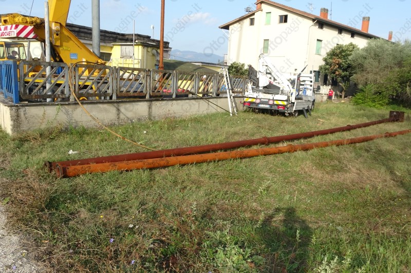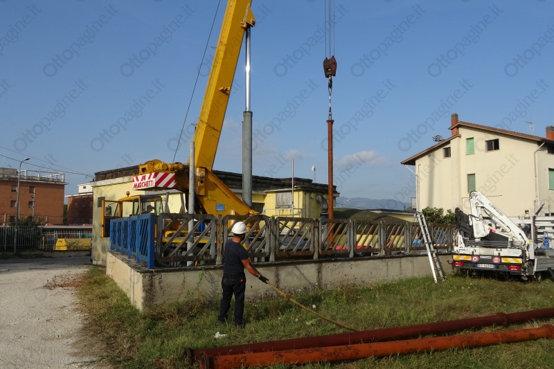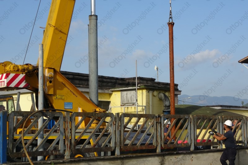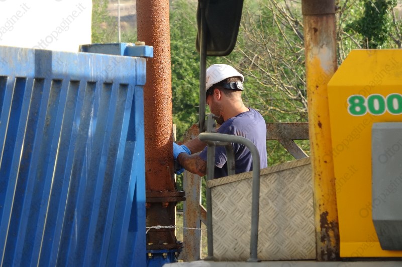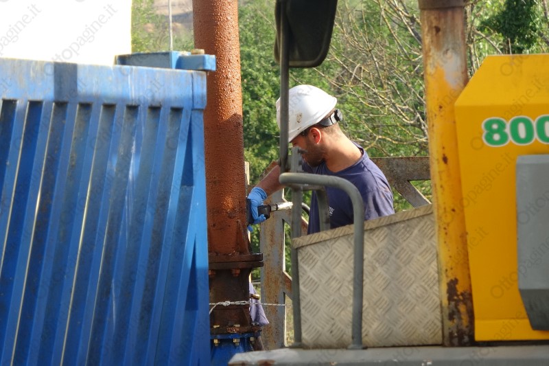 Sostitutore le pompe che tirano su l'acqua dai pozzi per poi spingerla – con l'ausilio di altri motori in superficie, significa utilizzare due enormi gru alle quali vengono agganciate le tubazioni (due pezzi per volta per una lunghezza di oltre 10 metri) e tirate all'esterno fino a far fuoriuscire la pompa sommersa e il motore che sono ad una profondità di circa 70 metri. Gli operai e i tecnici con l'ausilio del manovratore della gru, alzano i due steli di tubo e prima di svitare i grossi bulloni che li tengono ancorati alle altre barre di tubo, si devono assicurare di bloccare la parte ancora nel terreno per impedire che questa possa scivolare in fondo al pozzo senza possibilità di recuperare sia i tubi che la pompa.