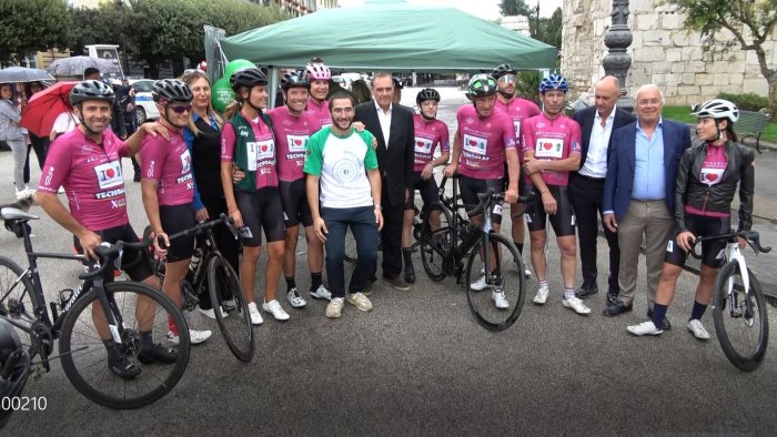 Ad accogliere la carovana in bici i volontari del gruppo di sostegno della fondazione di Benevento. Manifestazione patrocinata dal Comune di Benevento con il sostegno della Muccillo Group.