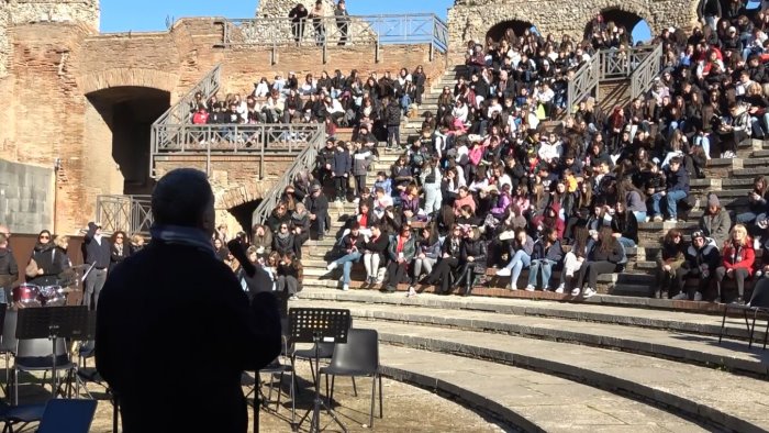 “Credo che la presenza dei ragazzi con le istituzioni – ha dichiarato il direttore del Teatro Romano, Giacomo Franzese – sia molto importante per costruire, lavorando insieme, la cultura della prevenzione attraverso le nuove generazioni. Un momento di riflessione che coinvolge proprio i giovani e che il Ministero della Cultura ha fortemente sostenuto nell'ottica del sostegno ad eventi di valore sociale”.