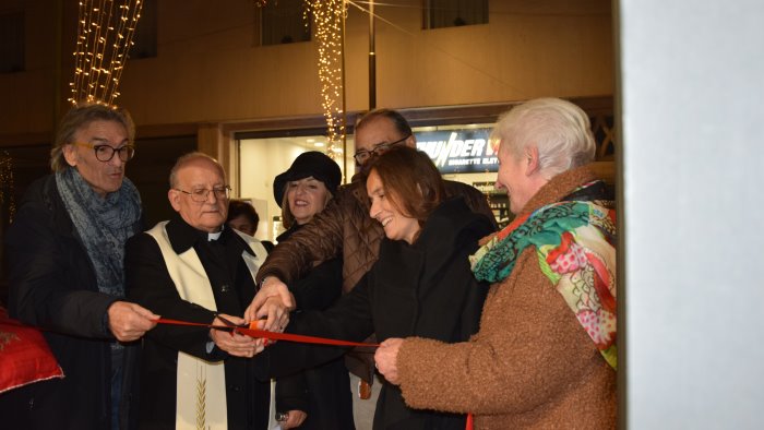 Oltre trenta lavori, più svariate minuterie, sono in bella vista nella nuova location di via Traiano; in un percorso tra foglie di platani, canestri impagliati e qualche chicca di arredi dei primi del ‘900, le postazioni ricoperte dal tradizionale drappo di raso, sormontate da presepi, rapiscono lo sguardo e l’attenzione dei visitatori.