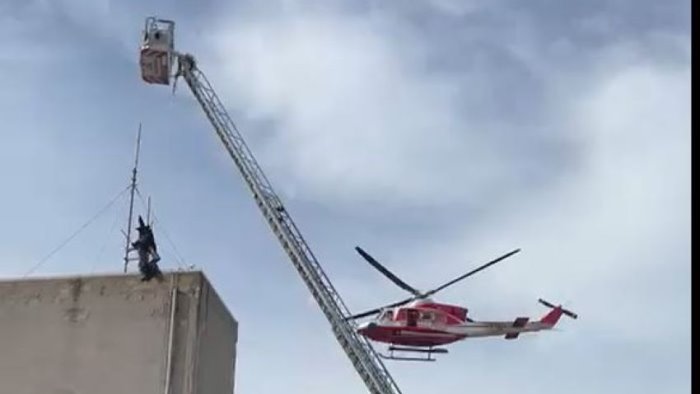 Tutti con il naso all'insù anche perchè in concomitanza con la discesa della 'vecchina' presso il comando provinciale di contrada capodimonte ha fatto tappa, in volo, un elicottero dei vigili del fuoco che ha così voluto rendere omaggio alle tantissime persone presenti.