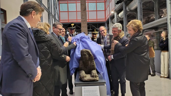 La illustrazione di Osanna ha poi riguardato tutte le altre Sale e Sezione del Museo che, raccoglie le testimonianze di tremila anni di storia e che, da oggi si è arricchita anche di una Sfinge in granito, alta 56 cm, lunga 122, larga 36, recuperata dai Carabinieri della Tutela del Patrimonio Culturale in Inghilterra tra oltre 700 beni d’arte trafugati da tombaroli e delinquenti vari nel corso dei decenni, ed assegnata dal Direttore Osanna proprio al Museo del Sannio.