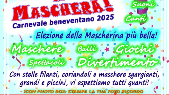 Il Carnevale è l’occasione per dare sfogo alla fantasia e alla creatività, nel solco di antiche tradizioni o con declinazioni nuove, inaspettate. Su la maschera: comincia il ballo Martedì 4 marzo 2025 la Pro Loco di Benevento Samnium con il patrocinio del Comune di Benevento e in collaborazione con la “Libertas-Sviluppo Nazionale” organizza presso la Villa Comunale di Benevento la manifestazione “Villa in Maschera” Carnevale Beneventano 2025 - spettacoli, animazione e l'attesa sfilata di Carnevale per i bambini.