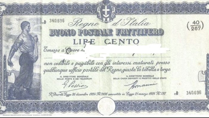 L'uomo, che vive a Benevento, ha ritrovato nello scantinato a casa della madre defunta a Cerreto Sannita, due buoni postali, rispettivamente di lire 100 del 1935 e di lire 500 del 1940.