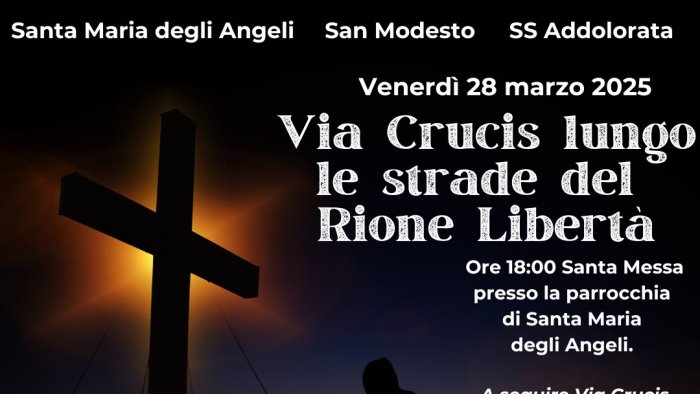 Le comunità parrocchiali di San Modesto, di Santa Maria degli Angeli e della SS Addolorata si uniranno per percorrere insieme le strade del Rione Libertà con la Via Crucis. Questo evento, fortemente voluto dai tre parroci delle comunità parrocchiali, don Leonardo Lepore, don Domenico Parlavecchia e don Gaetano Kilumba Papa, rappresenta un momento significativo di riflessione e devozione in pieno tempo di Quaresima.