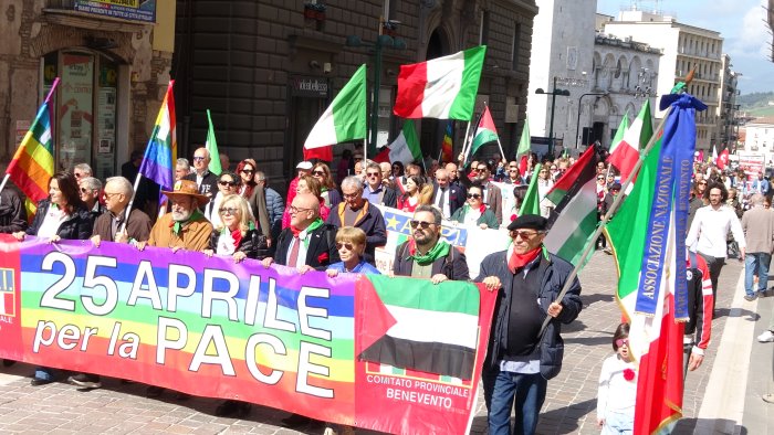 Oltre mille persone sono arrivate da tutto il Sannio a Benevento questa mattina per il corteo del 25 Aprile. Quest'anno 80esimo anno della liberazione dell'Italia dal nazifascismo. Evento come sempre organizzato dall'Anpi, associazione dei partigiani che nel Sannio è guidata da Amerigo Ciervo, associazioni, sindacati con la Cgil in testa. Presente il sindaco di Benevento Clemente Mastella (NEL VIDEO TUTTE LE INTERVIESTE E LE IMMAGINI