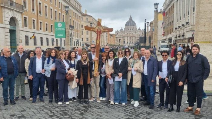 L’imprenditorialità intesa quale missione e valore sociale, come sottolineato nelle parole del Presidente di Piccola Industria Confindustria Benevento, Claudio Monteforte, che ha guidato la delegazione: “E’ doveroso essere presenti qui oggi, a rappresentare l’intero tessuto imprenditoriale di Confindustria Benevento. L’iniziativa, organizzata da tempo, ha raccolto un’adesione entusiasta da parte dei colleghi del territorio. Siamo ovviamente rammaricati di non aver potuto incontrare Papa Francesco, ma auspichiamo che il Conclave che si apre il 7 maggio ci doni un successore che sappia incarnare e testimoniare gli stessi valori proclamati con forza dal compianto Pontefice: un’attenzione speciale ai lavoratori, alla salute, alla tutela dell’ambiente e alla Pace”.