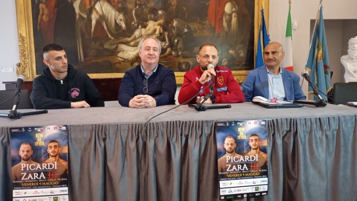 È stato il Museo del Sannio di Benevento a fare da location per la presentazione ufficiale dell’incontro valido per l’assegnazione del titolo europeo professionistico dei pesi gallo tra il bronzo olimpico di Pechino 2008 Vincenzo Picardi, campano di Casoria, e il sassarese Cristian Zara, in programma domani, venerdì 9 maggio, a Foiano di Val Fortore. Alla conferenza stampa sono intervenuti il presidente della Provincia di Benevento, Nino Lombardi, il sindaco di Foiano di Val Fortore, Giuseppe Antonio Ruggiero, il coordinatore del comitato organizzatore locale, Luciano Cotena, insieme con i due pugili sfidanti.