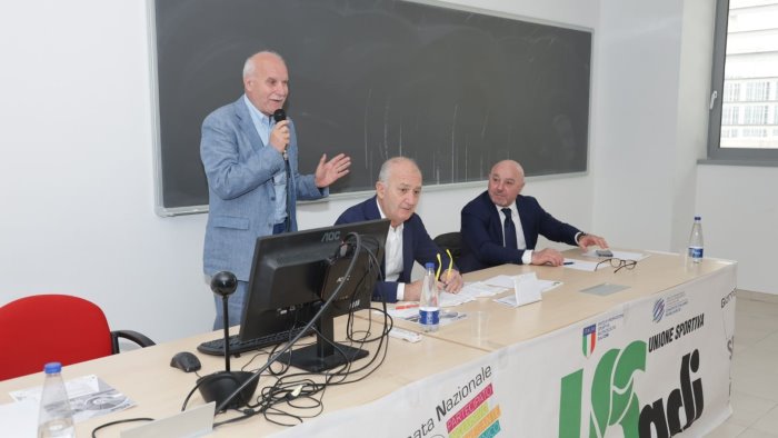 Inoltre una regolare attività fisica, oltre ad aiutarci a diminuire il rischio di patologie psichiche, ha effetti benefici sulla salute, sconfiggendo un fattore di rischio per le malattie cardiovascolari, tumorali e di diabete. Il convegno, moderato egregiamente da Piercarlo Presutti capo redattore ANSA Sport Nazionale, si inserisce all’interno di un percorso di collaborazione tra il Dipartimento di Scienze e Tecnologie dell’Unisannio e l’Unione Sportiva Acli, che porterà alla sottoscrizione di una convenzione finalizzata alla promozione congiunta di iniziative su salute e sport. Hanno partecipato all’evento dirigenti di associazioni sportive dilettantistiche e studenti dell’Istituto Paritario “De La Salle” , che hanno interagito durante il dibattito con entusiasmo.