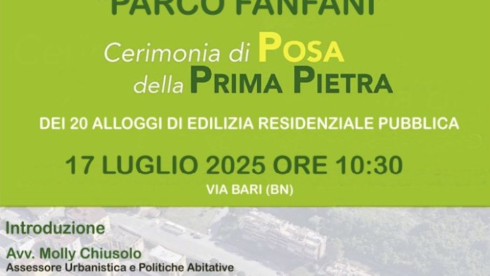 Giovedì a Benevento la posa della prima pietra di Parco Fanfani