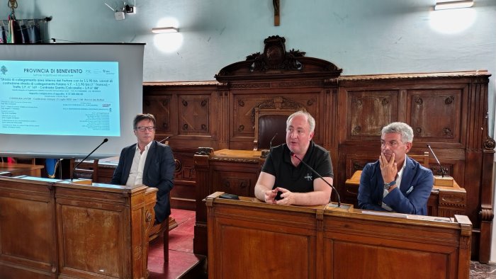 Questa mattina all aRocca dei rettori, sede della Provincia, Ente proprietario della nuova strada, alla presenza del Presidente della Provincia di Benevento Nino Lombardi, il Sindaco di Foiano Valfortore e Consigliere provinciale Giuseppe Ruggiero, il sindaco Montefalcone Valfortore Leonardo Sacchetti, il Segretario generale della Provincvia Maria Antonietta Iacobellis, i Dirigenti della Provincia Angelo Carmine Giordano e Nicola Boccalone, i funzionari e i tecnici del Settore Infrastrutture della Provincia, i Dirigenti dell’Associazione Temporanea di Imprese aggiudicatarie dell’appalto.