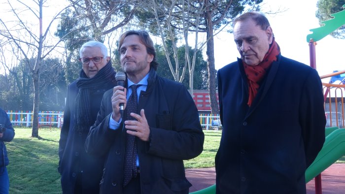 Taglio del nastro per lo spazio di via Delcogliano, adiacente all'ospedale San Pio di Benevento. Un parchetto che rappresenta anche più di una struttura per l'evasione considerato che potrà servire i piccoli familiari dei pazienti del nosocomio sannita. All'inaugurazione l'assessore Rosa ha ribadito l'obiettivo mentre il sindaco, Clemente Mastella, ha voluto rivolgere il suo monito alla cittadinanza perchè sia vigile contro atti di vandalismo che troppo spesso danneggiano il lavoro messo in campo dall'amministrazione.