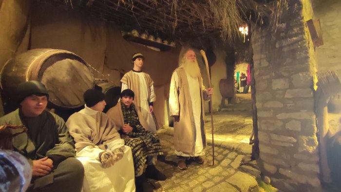 Si tratta di una delle più grandi e suggestive rappresentazioni della natività, che torna puntale dal 1987 tra vicoli illuminati da fiaccole e ambientazioni fedelmente ricostruite nell’allestimento dell’intero centro storico, in particolare dell’area Castello che rivive nelle scene colorate e autentiche, ogni personaggio, ogni ruolo aggiunge autenticità ed emozione.