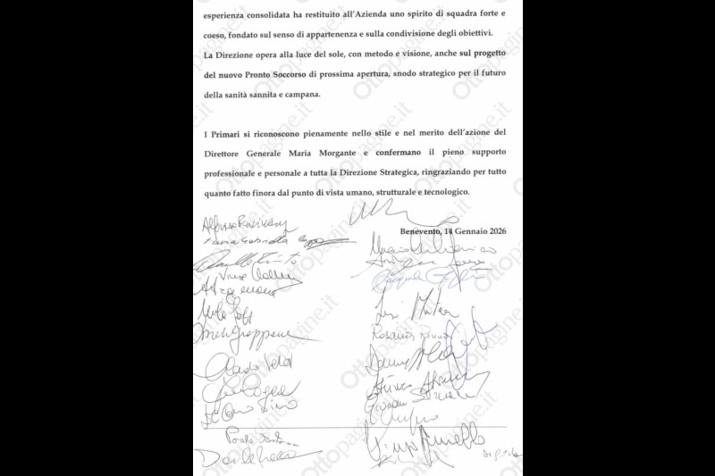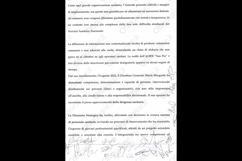 Riteniamo si tratti di rappresentazioni parziali e fuorvianti, che non restituiscono la reale condizione dell’AORN “San Pio”. La posizione dei Direttori di Dipartimento e dei Direttori di Unità Operativa è unanime: oggi il “San Pio” è una Azienda solida, operativa e affidabile, che garantisce ai cittadini cure di qualità grazie alla competenza, alla dedizione e al senso di responsabilità dei suoi professionisti che, sempre più spesso, si trovano anche a dover fronteggiare le carenze della medicina territoriale.