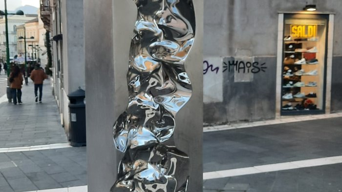 "Le opere in acciaio specchiato dell’artista albanese Helidon Xhixha, tre sculture dai volumi sinuosi ed estroflessi, a volte corrugate da inquietanti linee cicatriziali, sono attualmente esposte lungo il Corso Garibaldi. Acquistate dal comune di Benevento, potrebbero ridare senso a una piazza Risorgimento svuotata di funzioni, al di là della pensilina, riunite per unitarietà d’immagine e pluralità di visione".