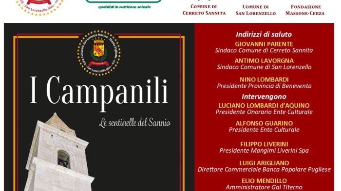 Nel calendario saranno presenti i campanili dei comuni di Benevento, Amorosi, San Lorenzello, Cusano Mutri, Pietraroja, Pietrelcina, Cerreto Sannita, Morcone, Pontelandolfo, Casalduni, San Lupo, Guardia Sanframondi, San Lorenzo Maggiore, Torrecuso, Paupisio, Sant'agata de' Goti, Solopaca, Melizzano, Dugenta, Limatola, Telese Terme, Castelvenere, San Salvatore Telesino, Faicchio, Puglianello, Gioia Sannitica, Montesarchio, Airola e Bucciano. La presentazione avverrà nel Palazzo del Genio a Cerreto Sannita nell'ambito dle premio nazionale di giornalismo “Giacomo Lombardi ed Ermanno Corsi”, mentre la premiazione è stata organizzata per sabato 20 giugno 2026 a San Lorenzello.