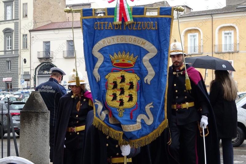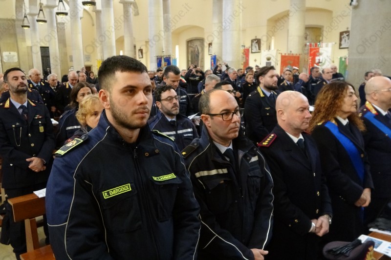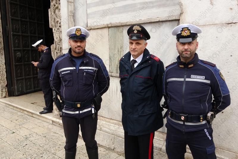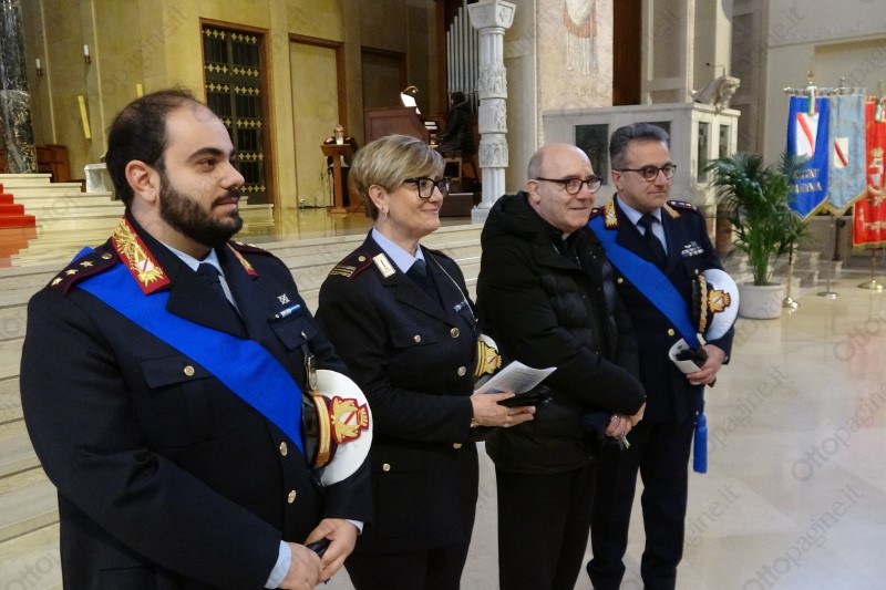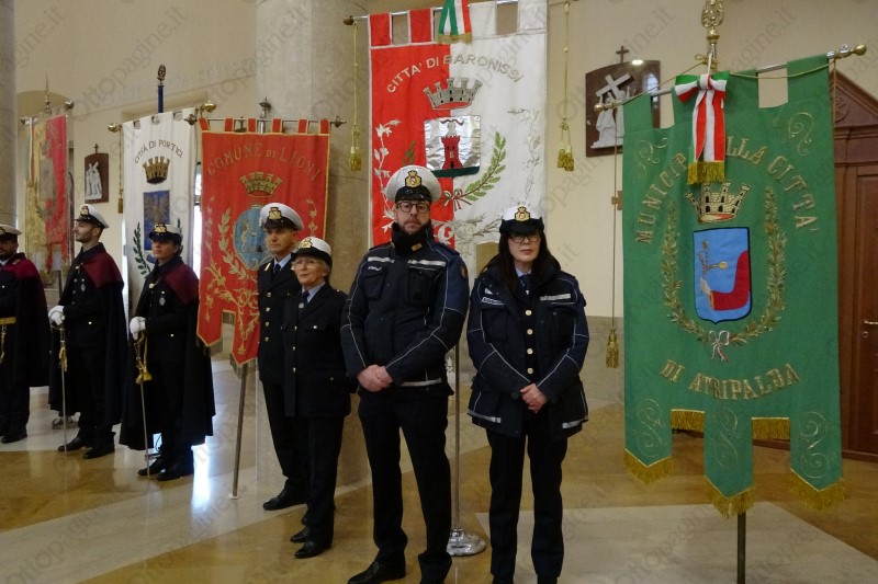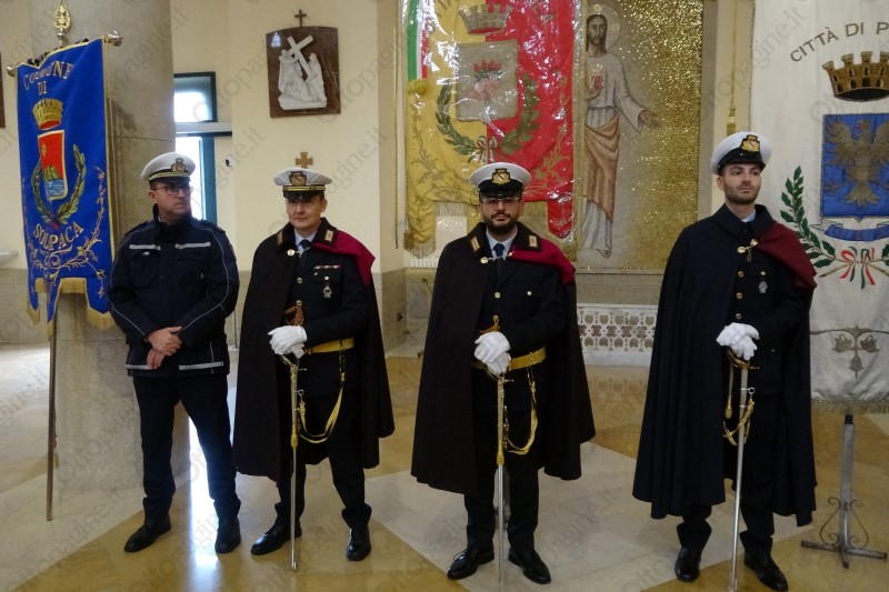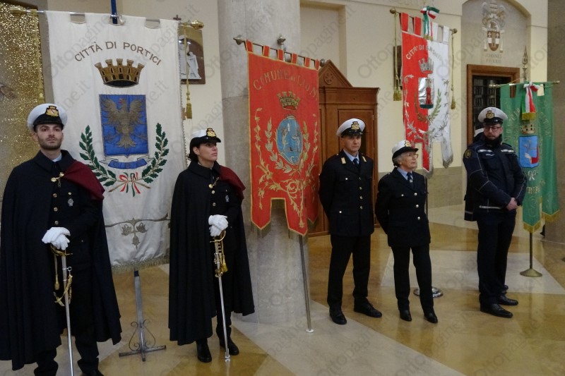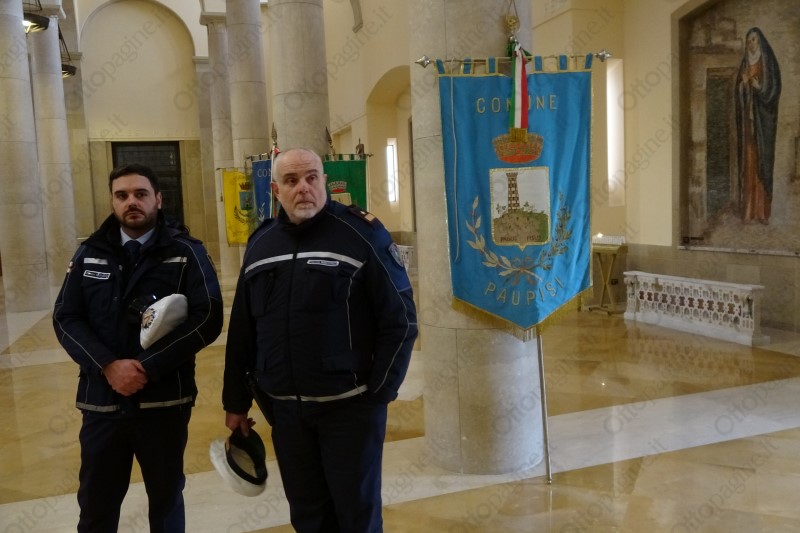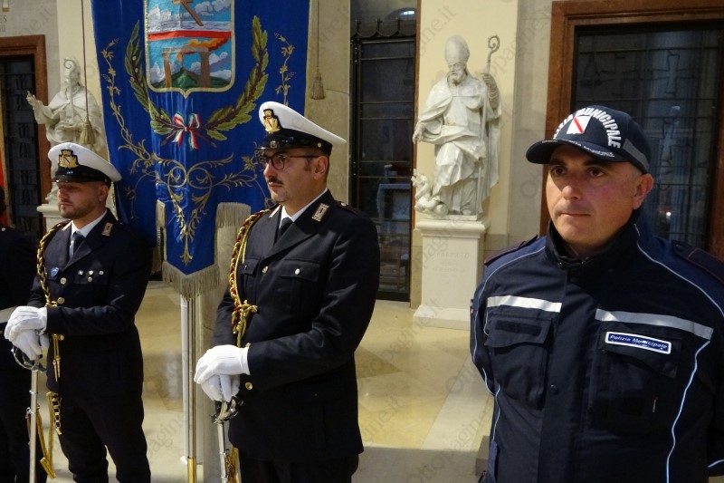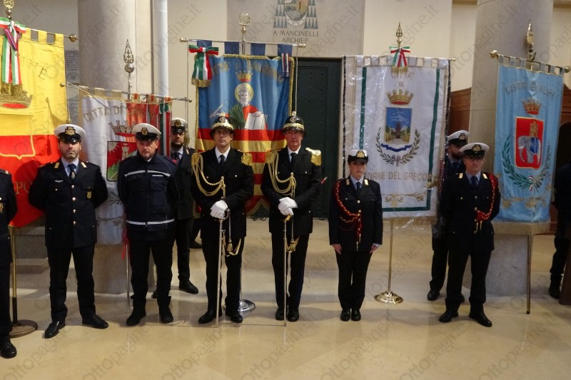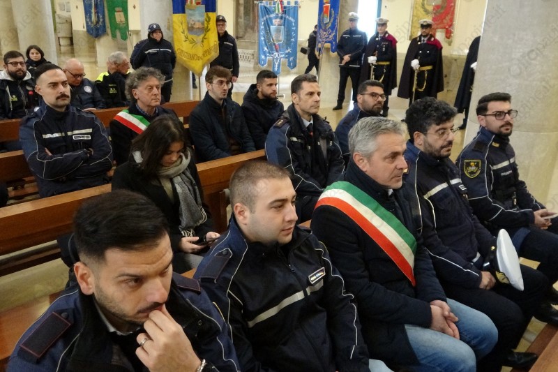 Centro storico di Benevento “invaso” dalle uniformi blu degli agenti delle Polizie municipali di decine di Comuni campani arrivati nel Sannio per la festa del patrono San Sebastiano. Lungo le navate della Cattedrale i gonfaloni delle polizie locali con in testa quello di Napoli con le massime onorificenze ottenute nei decenni.
