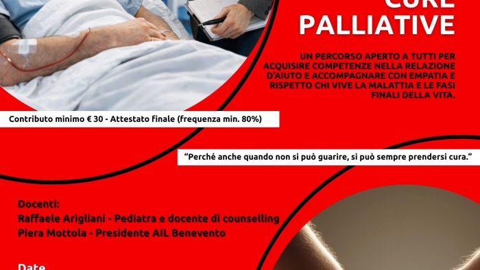 Prende il via il corso di formazione “Il caregiver nelle cure palliative: ruolo, bisogni e competenze relazionali – I livello”, organizzato da AIL Benevento OdV “Stefania Mottola” in collaborazione con l’Associazione “Agape Palliativa – ETS”, con l’obiettivo di formare cittadini e operatori capaci di offrire un supporto consapevole e umano alle persone affette da malattie gravi o nelle fasi finali della vita.
