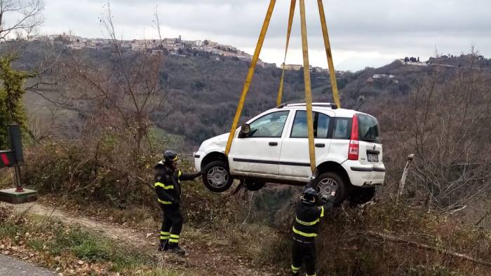 Momenti di paura questa mattina per le sorti di un architetto 'volato' con la sua auto in un burrone. L'incidente stradale è avvento nella mattinata di oggi in via Arenella della frazione Cucciano di San Martino Sannita. È qui che il professionista, nell'affrontare una curva ha perso il controllo della sua Fiat Panda che è finita in una scarpata ribaltandosi. Scattato l'allarme, sul posto sono accorsi i carabinieri della Stazione di San Giorgio del Sannio, i vigili del fuoco e l'ambulanza del 118 che ha trasportato il malcapitato in ospedale. Non gravi per fortuna le sue condizioni. Tra le ipotesi, che dovranno essere ovviamente confermate, anche quella di un cinghiale che l'uomo si sarebbe trovato di fronte in piena curva.