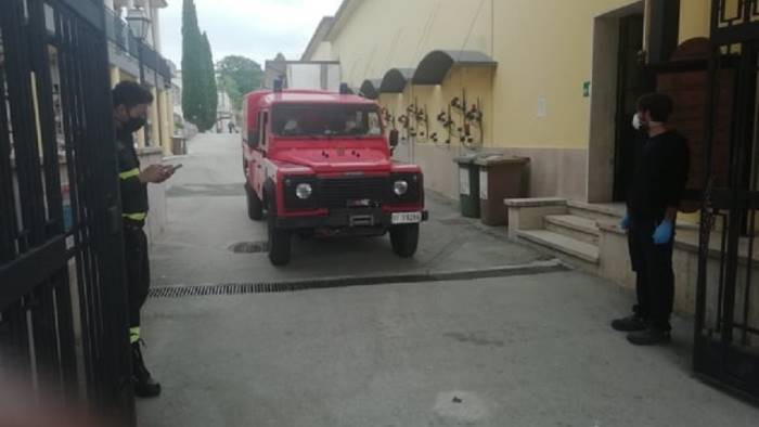 Sono stati i vigili del fuoco, anche con il nucleo Saf (Speleo alpino fluviale), ad intervenire questa mattina, poco dopo le 7.30, al camposanto. Hanno guadagnato l'accesso alla struttura dalla parte posteriore, attraverso il cancello riservato alle persone con disabilità, ed hanno raggiunto, accompagnati da un addetto, la zona segnalata.