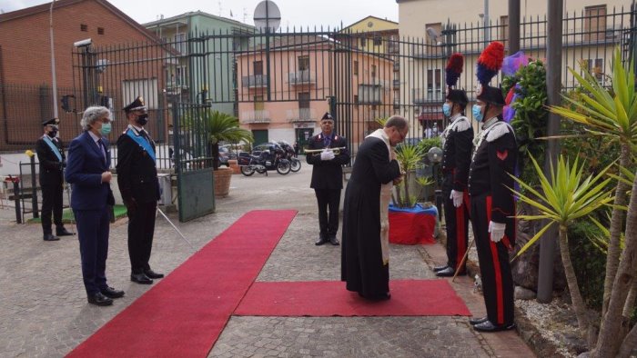 Questa mattina a Benevento presso il Comando provinciale dell'Arma i carabinieri della provincia hanno celebrato il 206° anniversario di fondazione dell’Arma. Una cerimonia strettamente privata – effettuata solo la cerimonia in ricordo dei Caduti - nel rispetto della contingente situazione sanitaria. Presente il comandante provinciale dell'Arma, il colonnello Germano Passafiume che ha accolto il Prefetto di Benevento, Francesco Antonio Cappetta. Insieme hanno deposto una corona d’alloro in onore del caduto Medaglia d’Oro al Valor Militare “alla memoria” Car. Aus. Stefano di Bonaventura, a cui è intitolata la caserma di via Meomartini, deceduto il 13 ottobre 1986 durante una rapina a Palermo. Durante la breve cerimonia sono giunti gli apprezzamenti del Comandante della Legione Carabinieri per tre comandanti di Stazione: Roberto D'Orta (Telese Terme), Corrado De Luca (San Giorgio del Sannio e Giovanni Mangraviti (Apice). L'alto ufficiale che ha riconosciuto il loro particolare impegno e la loro abnegazione nello svolgimento dei compiti istituzionali. Un anniversario particolare che si è svolto in tutta Italia nel massimo rispetto delle norme anti contagio ma pur sempre evidenziando lo spirito di abnegazione che contraddistingue tutti i carabinieri.