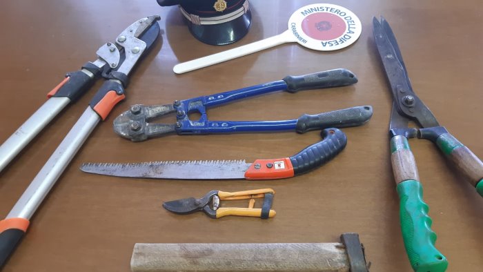 Avevano parcheggiato la loro auto in piazza Garibaldi e quando sono tornati per riprenderla hanno trovato i carabinieri della stazione ad attenderli. Trasferiti in caserma, i militari hanno poi provveduto a perquisire l'auto all'interno della quale sono stati rinvenuti e sequestrati cesoie, un coltello, un forbicione da siepe e un'ascia. Utensili che secondo gli investigatori sarebbero potuti essere utilizzati anche per compiere qualche furto.