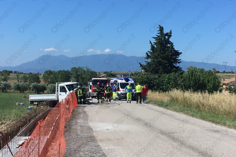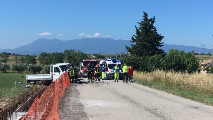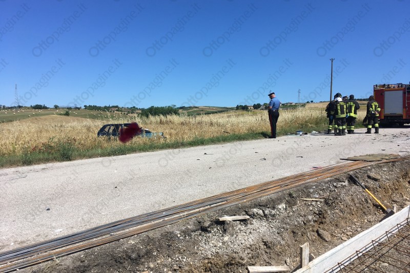 Purtroppo non c'è stato nulla da fare per gli occupanti la Fiat, che è stata catapultata in un campo di grano adiacente la carreggiata. Inutili i tentativi dei rianimatori. Troppo devastanti le ferite riportate nell'impatto, violentissimo, che ha anche scaraventato il furgone all'interno di un campo di erba medica a margine del cantiere per la costruzione di una zanella in cemento armato per delimitare la strada.