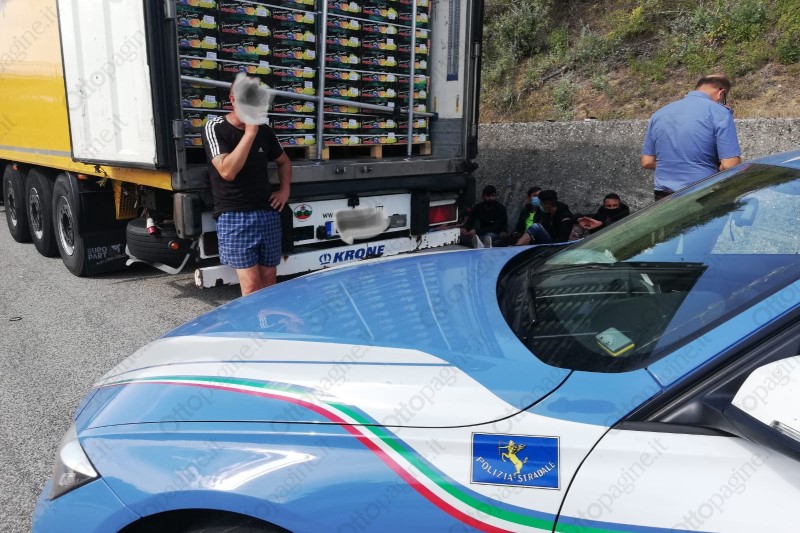Erano chiusi all'interno di un cassone frigorifero adibito al trasporto della frutta. Otto immigrati clandestini, scovati questo pomeriggio dagli agenti della polizia stradale, che hanno bloccato un autotreno lungo il raccordo autostradale tra San Giorgio del Sannio ei Benevento.