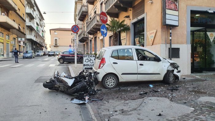 A scontrarsi una Hyundai I 10 con a bordo una persona e uno scooter con due passeggeri.
