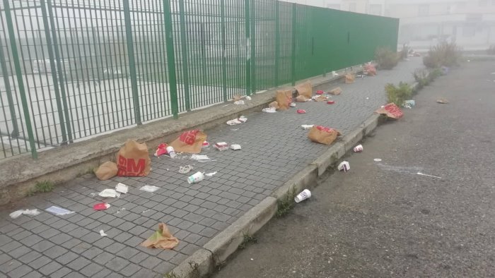 Un tappeto di immondizia lungo tutta l'arteria, esteso per decine e decine di metri, uno spettacolo vergognoso. L'eredità del sabato sera trascorso a consumare in strada i prodotti acquistati al MacDonald's, il segno di comportamenti incivili che non si riesce in alcun modo a sradicare.