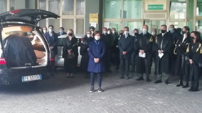 Al primo piano, intanto, il presidente del collegio giudicante, Sergio Pezza, ha interrotto un processo in corso e, dopo aver ricordato la figura dell'avvocato De Longis, ha invitato i presenti ad osservare un minuto di silenzio.