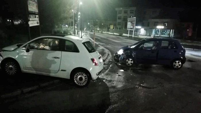 Momenti di paura, ma nessina conseguenza per i conducenti delle due auto che pochi minuti fa si sono scontrate nella zona alta della città, all'incrocio tra via Nenni e via Vetrone, regolato da un semaforo non in funzione. Si tratta di una Fiat Cinquecento e di una Matiz che provenivano da via Mascellaro e dal raccordo.