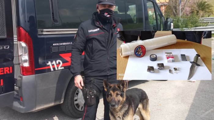E' stato un cane (Olli) del Nucleo Cinofili dei carabinieri di Sarno a fiutare e a far ritrovare ai militari, in un mobile, 100 grammi di hashish suddivisa in vari pezzi all'interno dell'abitazione di un 65enne di Faicchio che è stato per questo arrestato. Oltre allo stupefacente, i carabinieri della Compagnia di Cerreto Sannita hanno anche sequestrato un bilancino di precisione, materiale vario per la tritatura e ritenuto utile dagli investigatori per la preparazione e confezionamento della droga e un pugnale. Per l'uomo sono scattati i domiciliari.