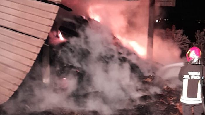 Vigili del fuoco in azione dalle 19,30 di ieri sera in contrada Morrone di Apice per un maxi incendio che ha interessato un capannone pieno di rotoloni di paglia fieno annesso ad un'azienda agricola. Sul posto più squadre dei vigili del fuoco che per tutta la notte hanno gettato acqua e smassato i balloni di foraggio andati tutti distrutti. L'intervento si è concluso solo in mattinata a causa del materiale che continua a bruciare. I roghi di paglia e fieno, infatti, si estinguono solo quando tutto il materiale è stato continuamente smosso con mezzi l'utilizzo di ruspe o di una pala meccanica e continuamente bagnati. Completamente distrutta la struttura in lamiera e pali in cemento armato che è anche collassata a causa del forte calore sprigionato dall'incendio. Per fortuna non si sono registrati feriti. Ancora da accertare le cause che hanno scatenato le fiamme.