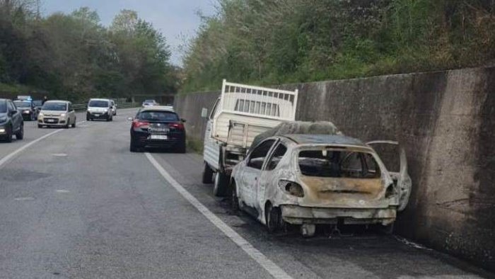 I due mezzi dati alle fiamme erano stati precedentemente rubati. In particolare il furgone era stato portato via nella notte tra lunedì e martedì a Morcone. I quattro sono stati invece fermati dai militari di Cerreto a Telese Terme mentre cercavano di allontanarsi dalla zona a bordo di un'altra auto. Nel corso del sopralluogo lungo la Telesina e delle perquisizioni – uno dei fermati è stato anche trovato in possesso di spray urticante - nei pressi dei mezzi incendiati in una scarpata, i carabinieri hanno rinvenuto numerosi attrezzi da lavoro, tra cui alcuni smerigliatrici, mini compressori e trapani professionali e staffe in rame di varia metratura del peso di circa 30 quintali. Materiale poi risultato rubato nella notte a Morcone. Le tre persone arrestate secondo l'accusa, infatti, nella notte avevano messo a segno ben sei furti all'interno di una serie di aziende a Morcone. La loro fuga era stata poi interrotta dall'incendio di uno della Peugeot. Poi la fuga a bordo di un'auto che evidentemente era arrivata in loro soccorso. Dichiarati in arresto, i tre sono stati trasferiti in carcere.
