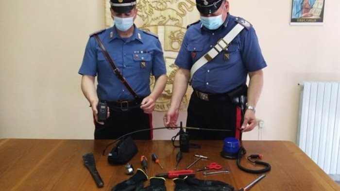 Una Fiat 500 X nera con un lampeggiante, di quelli in uso alle forze dell'ordine, sul tettuccio è stata intercettata e bloccata dopo un breve inseguimento dai carabinieri del Nucleo operativo e radiomobile della Compagnia di Montesarchio la scorsa notte in via Benevento. I militari, insospettiti dalla presenza del dispositivo luminoso sull'auto hanno infatti intimato l'alt al conducente. Invece di fermarsi, però, il conducente ha accelerato ed ha cercato di eludere il controllo dei militari che si sono così lanciati all'inseguimento anche con l'ausilio di altre pattuglie, dopo che il guidatore ha tentato una manovra azzardata con l'intento di speronare l'auto dei carabinieri. Fiat 500 bloccata nei pressi di Arpaia. A bordo due uomini e una donna: un 41enne residente nella provincia di Avellino e un 21enne originario della provincia di Napoli e una donna di anni 44 residente nella provincia di Avellino. L’auto è risultata rubata ad Acerra ad aprile scorso ed aveva una targa contraffatta. All'interno del veicolo ritrovati arnesi atti allo scasso e due radio-trasmittenti perfettamente funzionanti. Tutti sono stati denunciati per ricettazione, possesso di segni distintivi contraffatti, possesso di arnesi atti allo scasso, contraffazione della targa e resistenza. L'auto e il materiale ritrovato all'interno sono stati sequestrati. Nei confronti dei tre occupanti anche la sanzione amministrativa per aver violato la normativa anti covid, e la proposta per il foglio di via obbligatorio.