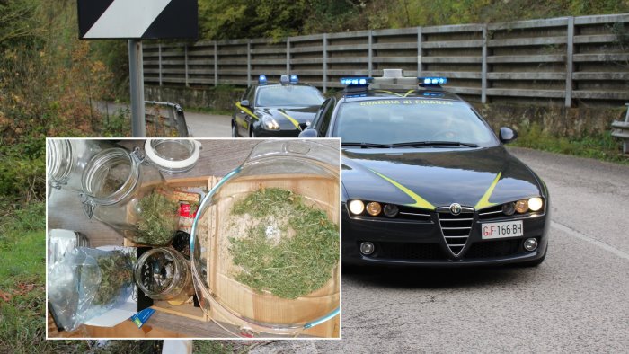 La perquisizione si è così estesa anche all'appartamento dell'indagato nel quale i finanzieri hanno trovato, all'interno di alcuni mobili, contenitori in vetro contenenti marijuana già essiccata e pronta per il consumo, nonché uno stanzino interamente coibentato dello stesso materiale utilizzato per il capanno e già dotato di impianto di areazione, utile a mantenere ad una giusta temperatura l’ambiente per lo sviluppo di piantine. Al termine dei controlli i militari hanno sequestrato 22 piante in fiore, circa 2 chilogrammi di sostanza stupefacente pronta per il consumo risultata positiva al drug test, nonché decine di semi accuratamente custoditi per proteggerli dall’umidità. Al 36enne sono stati concessi i domiciliari.