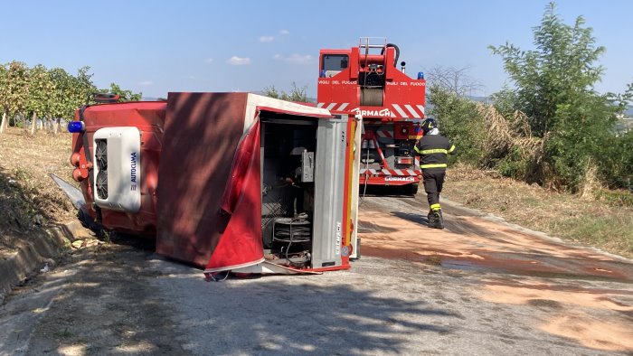 Sono sei i vigili del fuoco rimasti coinvolti nell'incidente di questa mattina nel territorio di Torrecuso, lungo la strada che da Ponte conduce a Paupisi. Il mezzo, un Bremach 4x4 sul quale viaggiavano i vigili si è ribaltato in una curva per cause ancora in corso di accertamento da parte della polizia stradale di Benevento che ha effettuato i rilievi. I feriti sono stati tutti trasportati negli ospedali Fatebenefratelli e San Pio di Benevento con le ambulanze del 118 accorse sul posto al pari dei carabinieri in transito lungo l'arteria comunale e che si sono immediatamente fermati per prestare i primi soccorsi. Sul luogo dell'incidente il comandante dei vigili del fuoco di Benevento, Maria Angelina D'Agostino e della Polizia Stradale, Antonio Vetrone per un sopralluogo. La squadra era impegnata a raggiungere una località montana per un'esercitazione di routine. Saranno ora gli accertamenti tecnici sul mezzo a dover chiarire le cause dell'incidente che non ha visto altre auto coinvolti. Ora si spera che le condizioni dei pompieri feriti non siano gravi. La situazione è continuamente monitorata dai vertici del comando provinciale.