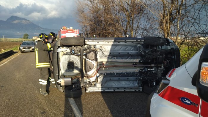 Momenti di paura questa mattina per due ragazze coinvolte in un incidente stradale alle porte di Benevento. È accaduto intorno alle 8 lungo via Vitulanese, la Provinciale 153 che dalla Fondovalle conduce in città, a contrada San Vitale. Le due erano a bordo di una Fiat Panda che si è ribaltata evidentemente dopo che la conducente ha perso il controllo. Scattato l'allarme, sul posto sono accorsi i sanitari dell'Unità di rianimazione del 118 Croce Rossa di Benevento e i vigili del fuoco.