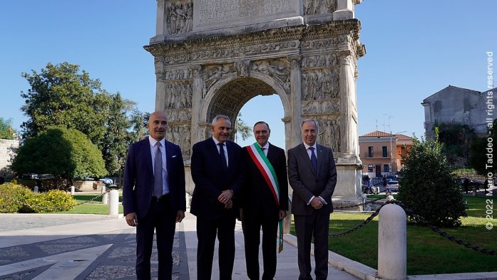 Il Capo della Polizia di stato è stato accolto proprio sotto all'Arco di Traiano dal Prefetto di Benevento, Carlo Torlontano, dal Questore Edgardo Giobbi e dal sindaco di Benevento, Clemente Mastella e dal presidente della Provincia, Nino Lombardi.