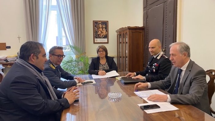 Si è svolta nella mattinata odierna, presieduta dal Prefetto, Dr. Carlo Torlontano, una riunione del Comitato provinciale per l'ordine e la sicurezza pubblica alla quale hanno preso parte il Vice Sindaco di Benevento, Avv. Francesco De Pierro, accompagnato dal Comandante della Polizia Municipale, Col. Fioravante Bosco, il Vice Questore Vicario, Dr.ssa Bianca Lassandro, il Comandante Provinciale dell'Arma dei Carabinieri, Col. Enrico Calandro e il Comandante Provinciale della Guardia di Finanza, Col. Eugenio Bua.