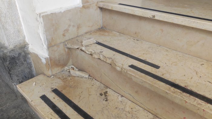 Questa mattina sono stati rinvenuti danni ad uno dei gradini della struttura culturale di Corso Garibaldi.