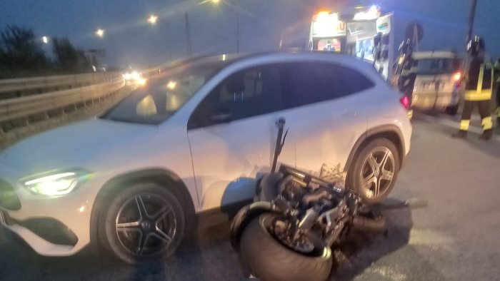 Poco dopo, a Benevento, nel tratto iniziale della Statale 212 tra la Rotonda dei Pentri e lo svincolo della Tangenziale, scontro tra una Harley Davidson ed una Mercedes Gla. Lavoro anche in questo caso per i sanitari del 118 che hanno trasportato il centauro al San Pio in codice rosso e il conducente della Mercedes al Fatebenefratelli per accertamenti. Necessario anche l'intervento dei vigili del fuoco che hanno messo in sicurezza i mezzi coinvolti nello scontro. La polizia municipale ha effettuato i rilievi che dovranno ora accertare la dinamica del sinistro.