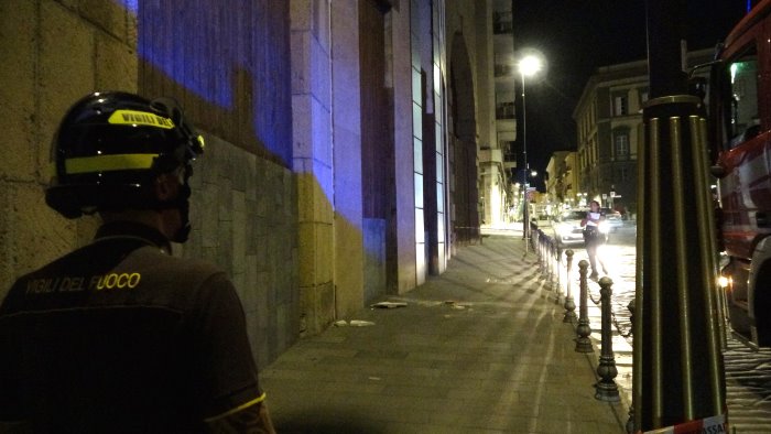 Il marmo si è staccato da un'altezza di circa 5 metri ed è precipitato sul marciapiedi sottostante dove in qual momento stava transitando il giovane colpito di striscio nella zona dell'orecchio e ad un piede.