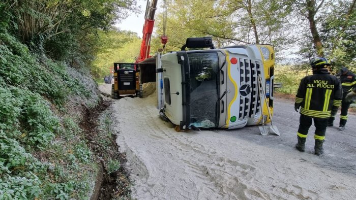 Momenti di paura e una persona ferita questa mattina per un incidente stradale registrato lungo via Bebiana, tra Solopaca e Melizzano. Incidente che ha visto coinvolto un camion Mercedes Actros carico di sabbia, condotto da un giovane. Secondo una prima ricostruzione, il mezzo pesante, per cause ora in corso di accertamento, si è ribaltato sulla carreggiate. Il camionista è rimasto incastrato con una gamba all'interno della cabina. Scattato l'allarme, sul posto sono accorsi i vigili del fuoco del distaccamento di Telese Terme che hanno liberato il conducente rimasto incastrato con un arto all'interno della cabina di guida e lo hanno affidato alle cure dei sanitari del 118. Operazione delicata quella dei vigili del fuoco che hanno dovuto sollevare la postazione di guida di qualche centimetro per consentire di liberare il malcapitato. La cabina è stata infatti sollevata con l'utilizzo di particolari cuscini (Vetter) che inseriti sgonfi tra l'asfalto e la carrozzeria, sono stati poi riempiti d'aria in modo da sollevare il mezzo pesante poi recuperato con l'ausilio della gru arrivata dal comando provinciale di Benevento.