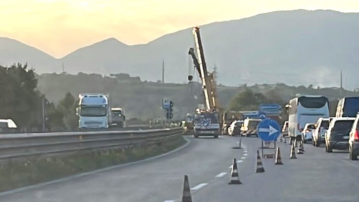 Traffico in tilt lungo il Raccordo A09 Benevento Ovest Benevento Centro nel pomeriggio di oggi per la rimozione di un camion che qualche ora prima era finito contro il guard rail. Un incidente che per fortuna non ha fatto registrare feriti ma che ha creato disagi per gli automobilisti incolonnati per lungo tempo in direzione della diramazione per Caianello e Campobasso. Secondo una prima ricostruzione, dopo aver perso il controllo del mezzo, l'autoarticolato si è 'infilato' nei piantoni della barriere all'altezza dello svincolo per Benevento Ovest. Per la rimozione del mezzo pesante, necessario l'intervento di due gru di una ditta specializzata e numerose squadre dell'Anas che hanno chiuso il raccordo per circa un'ora.