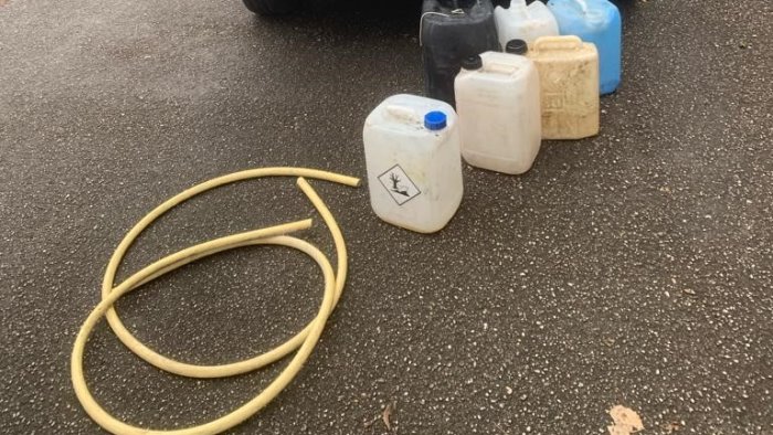 Ricettazione di alcune taniche di gasolio è l'accusa per un giovane della provincia di Caserta fermato dai carabinieri della Stazione di Amorosi e trovato in possesso del carburante. L'indagato è stato fermato mentre era alla guida di un'auto nella quale sono stati trovati circa 70 litri di gasolio, due tubi di gomma, due coltelli da cucina ed una bottiglia in plastica usata come imbuto, di cui non sapeva fornire la provenienza. Per il giovane è scattata la denuncia, mentre il gasolio è stato sequestrato in attesa che si capisca la provenienza.