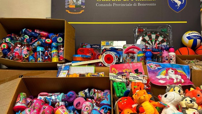 Nei giorni scorsi, i finanzieri del Comando Provinciale di Benevento, hanno attuato diversi servizi finalizzati alla repressione e al contrasto di chi ha approfittato, soprattutto in questo periodo in occasione dell’approssimarsi delle festività natalizie, per porre in essere condotte commerciali scorrette, attraverso la vendita di giochi pericolosi per la salute dei bambini, a prezzi sproporzionati, non corrispondenti a quelli di mercato.